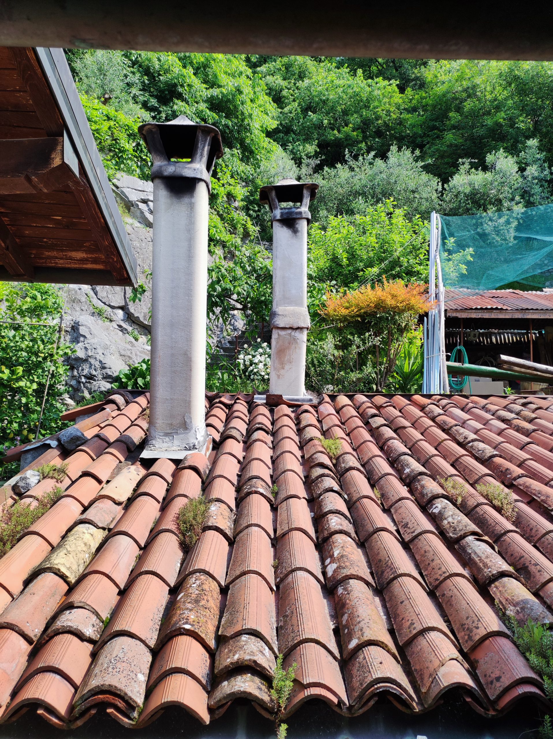 Materiali contenenti amianto come i comignoli in cemento-amianto, a sezione circolare o quadrangolare, o all’interno di comignoli in muratura. Usura o cattiva manutenzione o l’aziene degli agenti atmosferici  possono aver comportato danni al manufatto e il suo deterioramento. E’ necessario intervenire il prima possibile dato l’alto rischio di dispersione di fibre di amianto nell’aria.